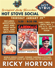Meet and greet with Ricky Horton! Hot bites and Cardinals baseball stories in the Motor Dome January 29th. Fans get to meet Ricky, an autograph and photo. Hot bites provided. Cash bar.