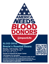 Springfield-Brezie's Roasted Beans Monthly Community Blood Drive Monday 12/8-Sunday 12/14